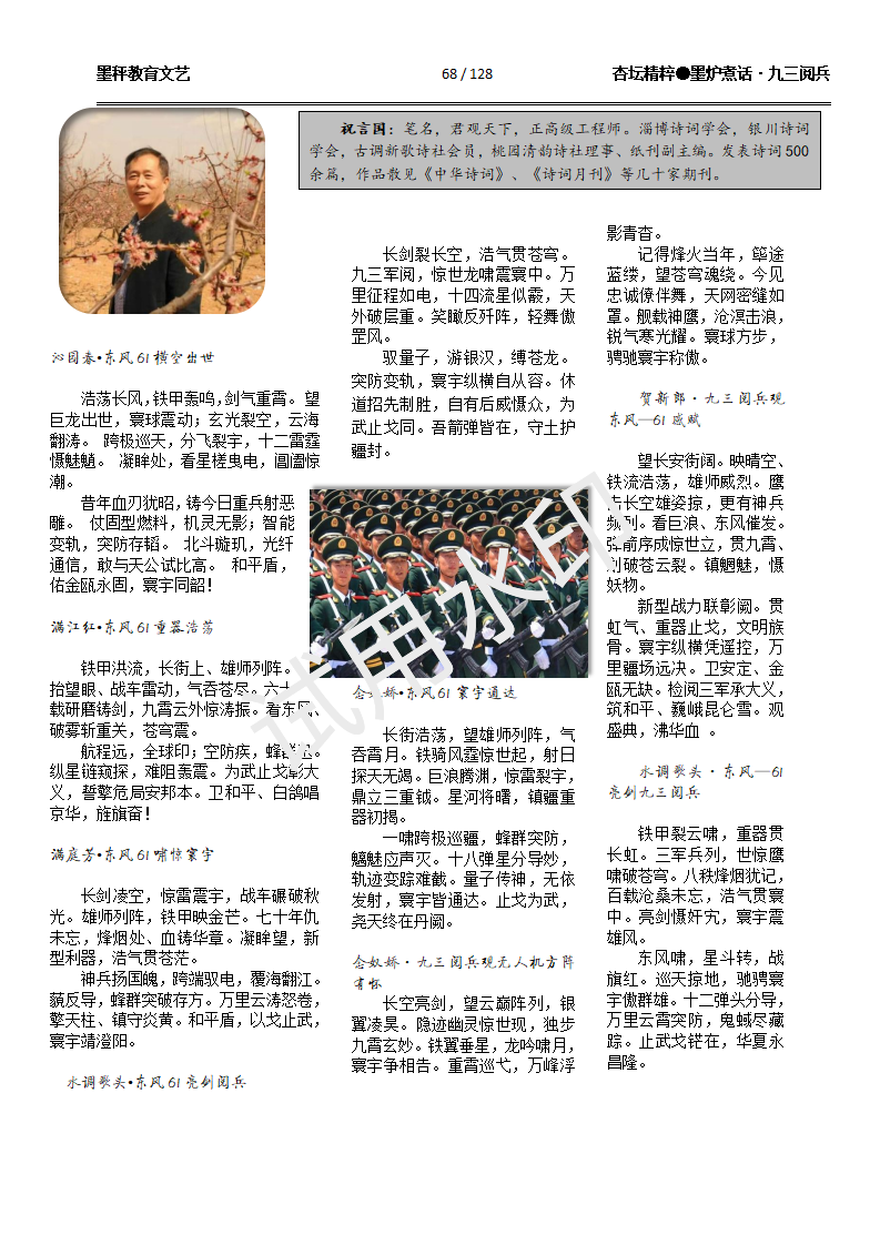 | 祝言国阅兵古体诗词小辑 | |||||